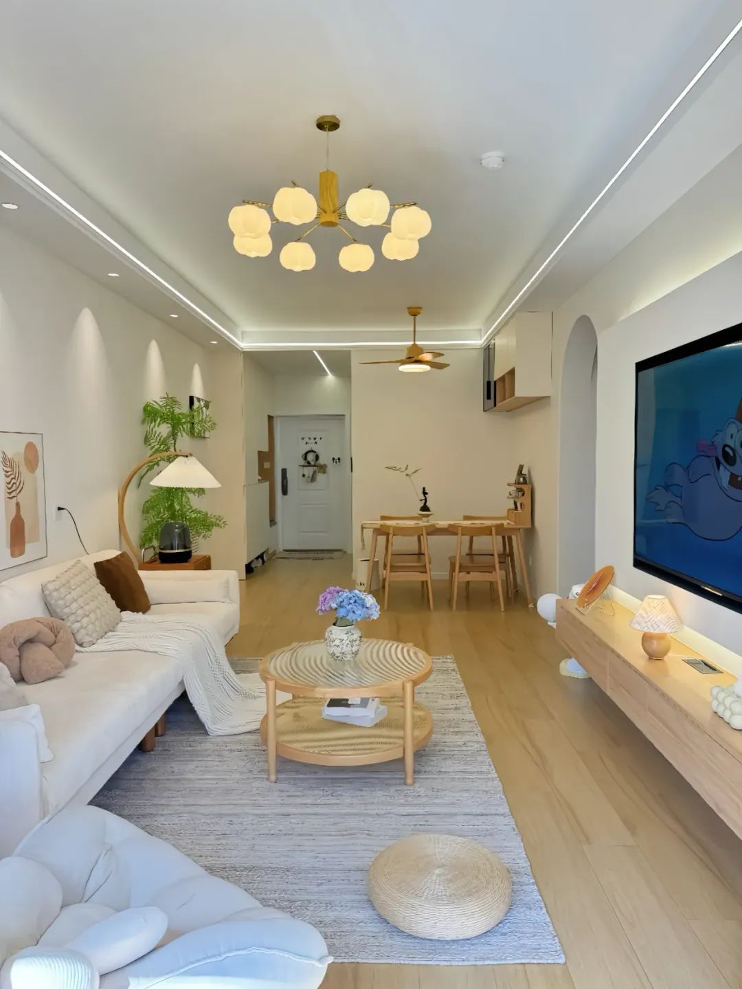 ▶硬装整体比较简单,全屋通刷三棵树小清新乳胶漆,地面通铺20*120的木纹砖。